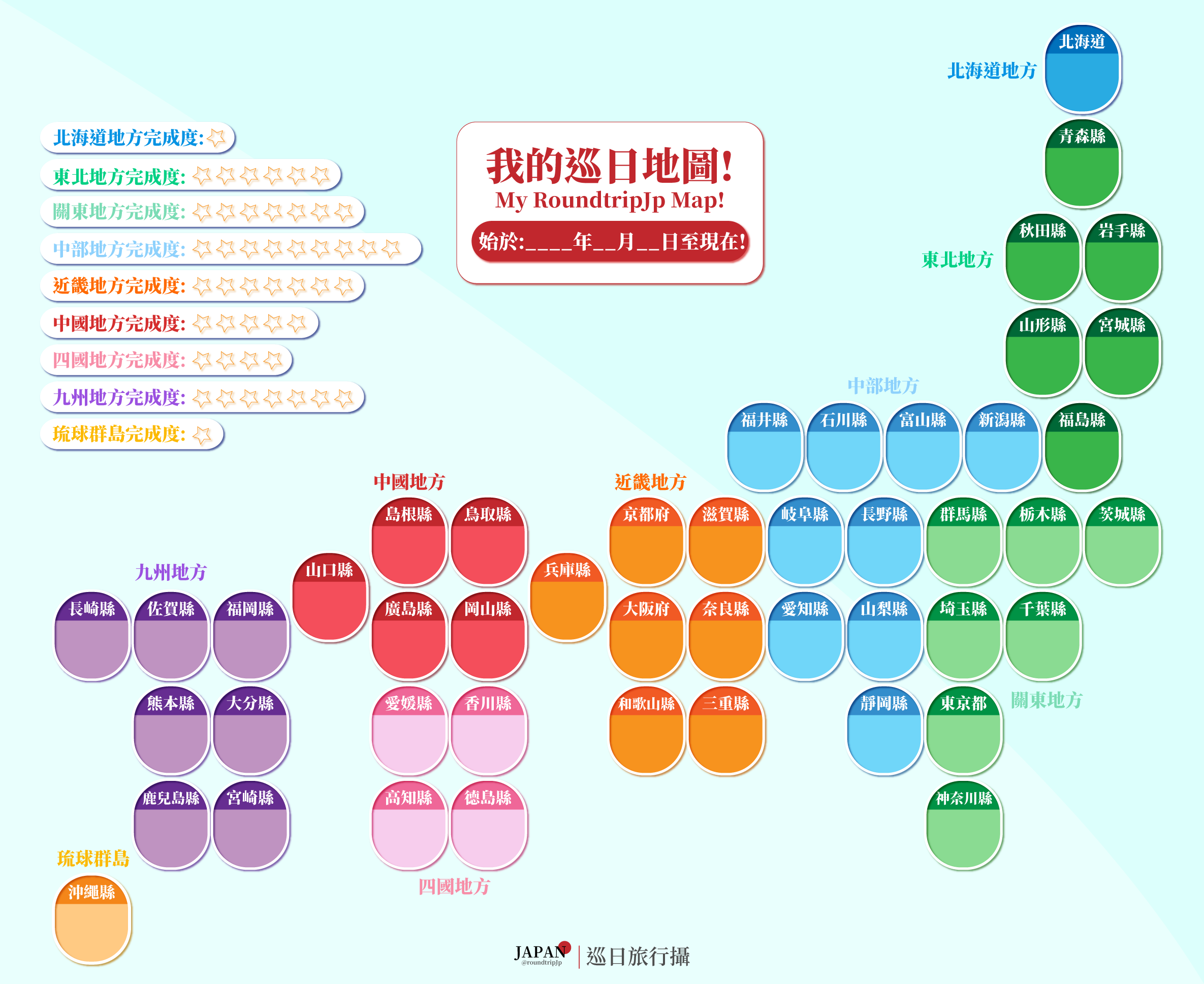 | 詳細日本地圖、47都道府縣地理概況,請參閱下方網頁說明: https://roundtripjp.com/2020/05/11/guide-5/ |